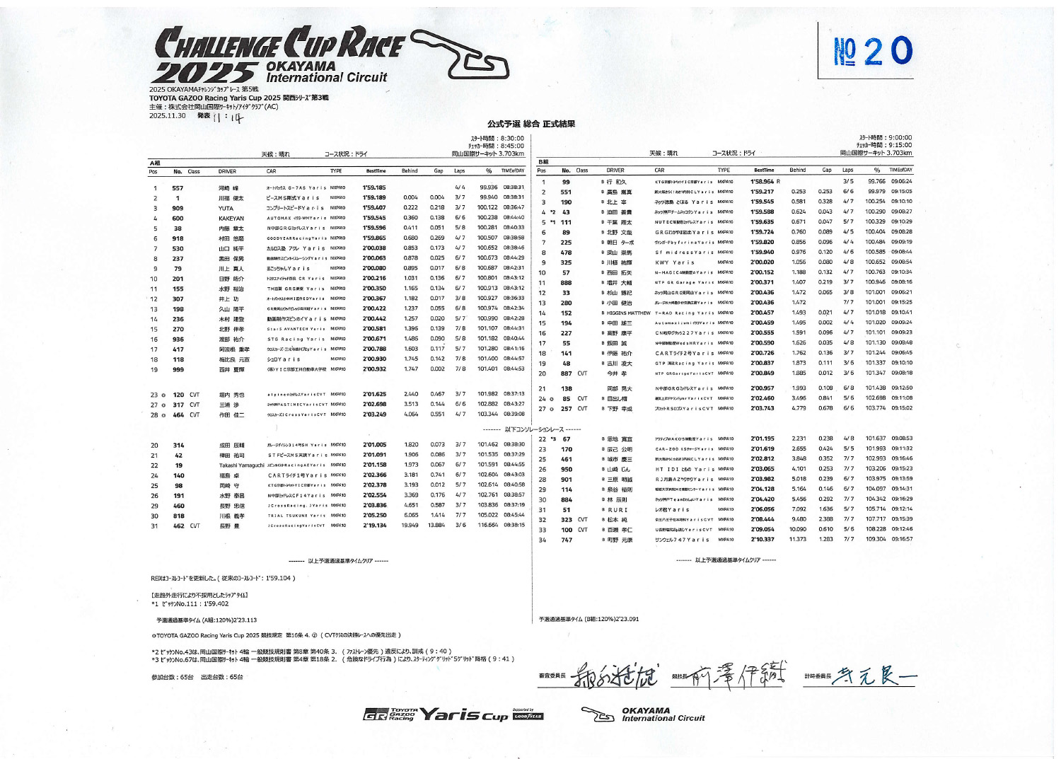 Yaris CUP 2025 関西シリーズ 第3戦 リザルト
